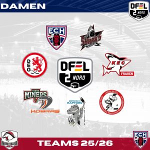 In der DFEL2 Nord können wir mit der Düsseldorfer EG und FASS Berlin zwei neue Gegner am Pferdeturm begrüßen, dazu spielen die Dinslakener Kobras jetzt in einer Spielgemeinschaft mit dem Herner EV.