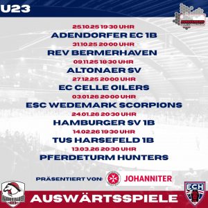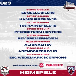 Am kommenden Samstag, 04.10.25, 19:30 Uhr startet unsere U23 in ihre zweite Saison in der Verbandsliga Nord, Gegner am heimischen Pferdeturm sind die Celle Oilers.