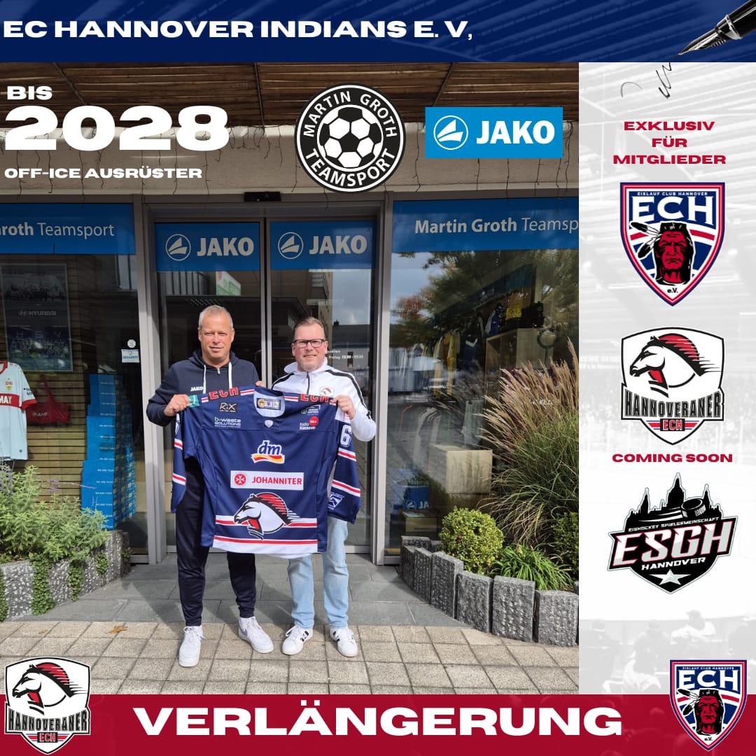 Der EC Hannover Indians e. V. und die JAKO AG haben ihre 2023 begonnene Zusammenarbeit vorzeitig verlängert, JAKO wird unseren Verein auch in den kommenden drei Jahren als Off-Ice Partner ausrüsten.